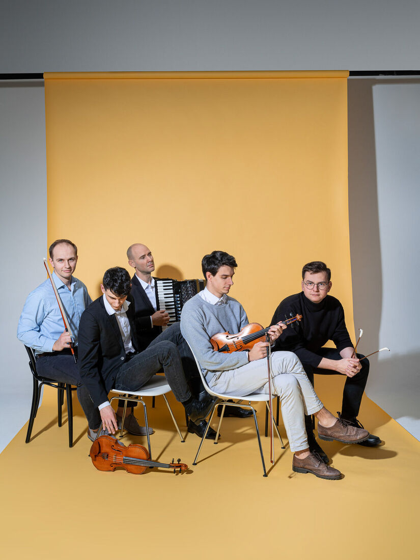 takový je název kapely, která v rámci Tomáškovy a Novákovy hudební Skuteč představí 14. 4. 2026 od 18:00 v Proseči svůj program Harmonie hudebních světů. Jmenované uskupení výborných muzikantů charakterizuje originální nástrojové složení, láska k lidové hudbě a novátorský přístup k aranžování skladeb. To jim otevírá dveře k novým možnostem provedení klasiky a zprostředkování zážitků překračujících žánry i čas.